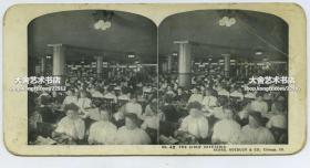 清末民国同期印制立体照片---美国也是世界最大的私人零售邮购企业西尔斯·罗巴克( Sears and Roebuck)公司SEROCO员工餐厅后厨,每日提供12500份餐食。