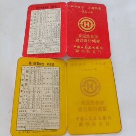 1991年中国人民建设银行(新洲县支行)恭喜发财 年历卡(2张合售)