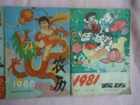 年历:1981、1988/1989/1990/1991/1992.1993/1994/1995年9册合售