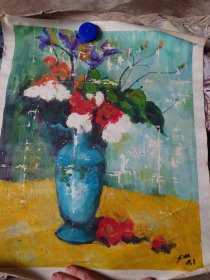 这幅油画作品破损掉颜料,色彩丰富,静物花卉写生主题,适合会修复的拿去。