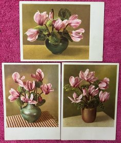 民国时期“仙客来”苏联花卉油画老明信片三枚