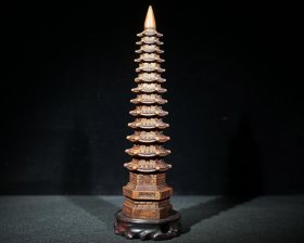 旧藏花梨木精工雕刻文昌塔 檀木底座 尺寸:长8.5cm宽8.5cm高28cm 重量:250g