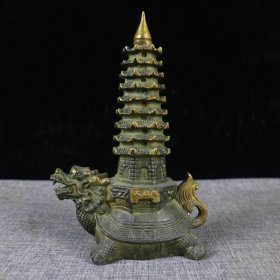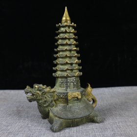 铜文昌塔 龟塔摆件,品相如图 长15宽8.5高23厘米 重约1.35kg