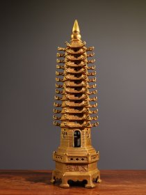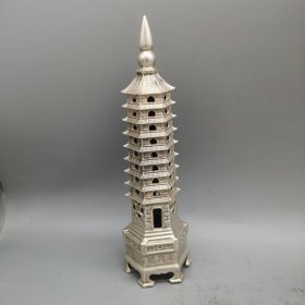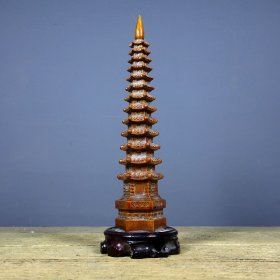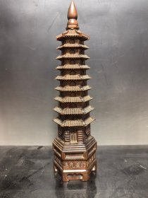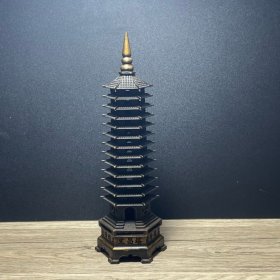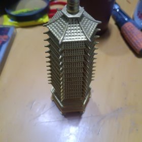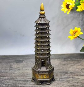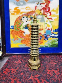 56_早期 铜 文昌塔一座!里带天然紫水晶!十分有意思!寓意好!居家摆放 学业有成!步步高升!陈设摆放精品!塔重二斤左右!水晶不小13公分!内有乾坤!收藏精品!