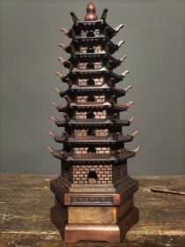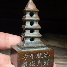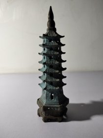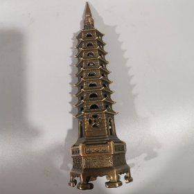 236_早期 铜 文昌塔一座!里带天然紫水晶!十分有意思!寓意好!居家摆放 学业有成!步步高升!陈设摆放精品!塔重二斤左右!水晶不小13公分!内有乾坤!收藏精品!