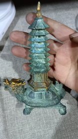 早期 铜 文昌塔一座!里带天然紫水晶!十分有意思!寓意好!居家摆放 学业有成!步步高升!陈设摆放精品!塔重二斤左右!水晶不小13公分!内有乾坤!收藏精品!