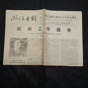 浙江日报1993年4月2日1~4版 政府工作报告 北仑电厂2号机组锅炉吊装完毕 浙江农大正大肉鸡发展中心奠基 遂昌县1991年1992年度重合同守信用单位名单
