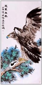 国画家高晓林老师 ,四尺雄鹰、松树《英气生风》江苏省美术家协会会员,中国煤矿文联美协会员,中国书画报社特聘画家 140X68厘米未裱宣纸画心 折叠后装信封发货 惠民价