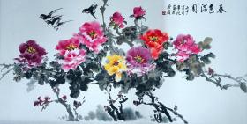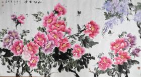 严少楼花卉1件,严少楼:1966年生,毕业于北京工艺美校,师从著名画家何境涵先生。现为中国美协吴江写生基地副主任,江苏省美术家协会会员,苏州东吴画院副院长,137X34厘米
