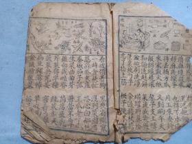 民国石印~绘图日用杂字,一本全,12筒页24面内容,第三筒页下面有缺损伤字,最后一页页缺字,保真包老品如图,20/13厘米