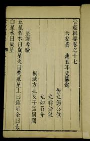【天文术数名著】清早期精刻本《管窥辑要》又名《天文大成辑要》存卷17.卷 18.两卷一厚册全,有紫薇恒星图,内容为:星緾考験,紫薇宫總论,等。以古今天文占候分类编录,希见古籍,品好如图