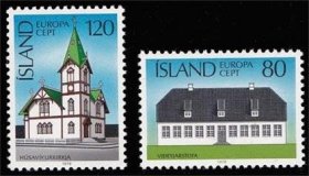 冰岛邮票 978:欧罗巴-建筑艺术,冰岛首座石结构房子和教堂 2全