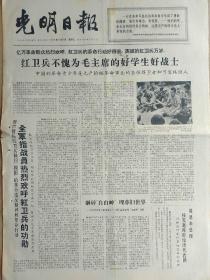 光明日报1966年8月30日,今日四版全。【红卫兵不愧为毛主席的好学生好战士;广州红卫兵登上黄花岗七十二烈士墓顶宣判“自由神”死刑;英雄的红卫兵万岁;彻底清算陈其通的反革命罪行;】