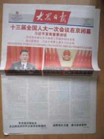 529、大众日报 2018.3.21日 十三届全国人大一次会议闭幕 2开20版彩印(不够版)