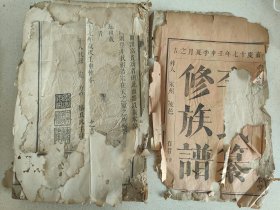 清代道光年间毛笔手写族谱:廖氏支谱,江右宜丰,隶属今江西宜春属县,大16开本了内附一张卖妻契约,一张修谱摊派费用清单。品弱,有虫蛀,地方文献,识者宝之。