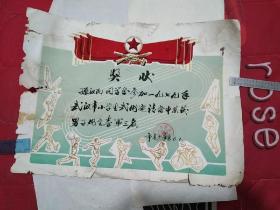 70年代奖状2张一组:孙xx同学在参加一九七九年武汉市小学生武术邀请赛中荣获男子规定拳(全能)第三名、植绒、毛笔手写、市青少年宫6月1日、见书影及描述