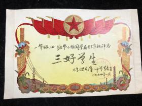 奖给三好学生奖状 1974年 北京三里屯第二中学(店6号箱)