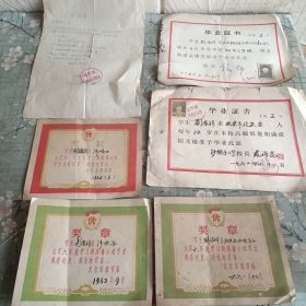 50~60年代河南孟县一个人的毕业证书和奖状一组6张