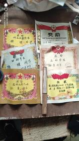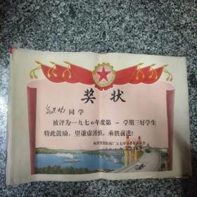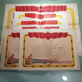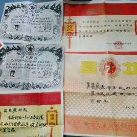 1977年慰问信2张、1977年武钢教委会工业学大庆 狠批四人帮先进教师奖状3张、1978年武汉铁路局旅客列车简明时刻表1张(总共6张合售)