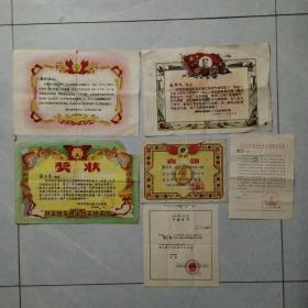 奖状:中国人民解放军第7437工厂 1983年工作者称号、1978年工作者光荣称号、1973年先进生产者光荣称号、1979年先进生产者光荣称号 6张合售