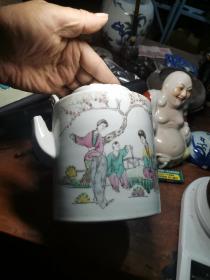 粉彩人物笔筒