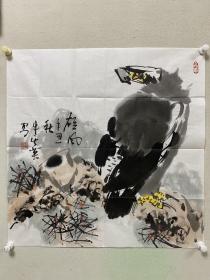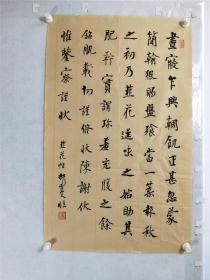 B16573号书法 临杨少师 韭花帖 75×69cm 作者:何海辰 河南省焦作市(山阳古城) 憨羽斋 昼寝乍兴,輖饥正甚,忽蒙简翰,猥赐盘飧。当一叶报秋之初,乃韭花逞味之始,助其肥羜,实谓珍羞,充腹之馀。铭肌载切,谨修状陈谢伏惟鉴察。谨状。七月十一日,状。