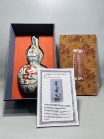 带证书回流明五彩龙纹葫芦花瓶一个,尺寸如图