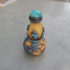 创汇时期,老琉璃鼻烟壶一个,葫芦形状,纯手工雕刻,