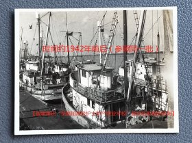 民国老照片:民国福建莆田(古称“蒲口”、别称“荔城”)—码头渔船。时间约1942年前后(参照同一批)。【福建莆田“圣路加高级护士助产职业学校”端贞私家相册系列】(提供同一批已售的一张截图,供参考)