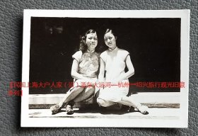 民国老照片:民国2个小孩合影,与同一批《民国旗袍美女,绍兴运河边看垂钓的那两位》坐在同一门槛上。【民国上海大户人家(沿)浙东大运河—杭州→绍兴旅行观光旧藏系列】