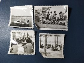 80年代快乐的大学生郊游划船 老照片4张 一组