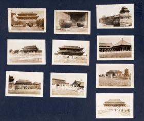 清末民国初 北京故宫 一组10张银盐老照片 故宫西华门、太和门、午门、太和殿金缸、宏义阁、铜龟铜鹤、角楼、中和殿、保和殿、太和殿铜炉、太和殿 已泛银 小规格 背面有中英文印戳