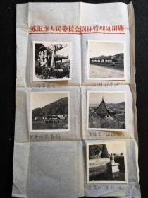 五十年代苏州园林老照片一组【怡园荷花厅、石湖行春桥、天平山高义园、光福香雪海梅花亭、灵岩山浣花池】共五张 著名漫画家、摄影家、原苏州园林管理处处长陈涓隐摄,附手札一通 珍贵