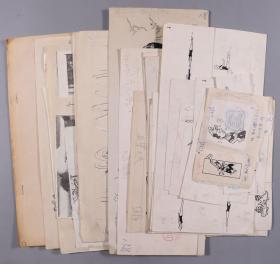 同一来源:游泳杂志第三期图稿:体育画家 冯向杰、倪东坚、杨悦浦、赵沛等人 画稿约22幅,附打印资料、信札、游泳照片杂志剪片等资料一组 HXTX330908