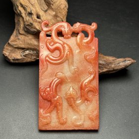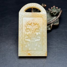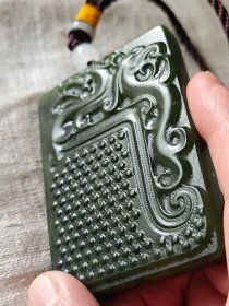 和田玉仿古祥云龙牌 玉质细腻 双面雕工 牌型大气 个性 精工雕刻 府上有龙之意 尺寸:48×30×12mm,和田玉,发货前,新疆发货,根据要求拍照确认。
