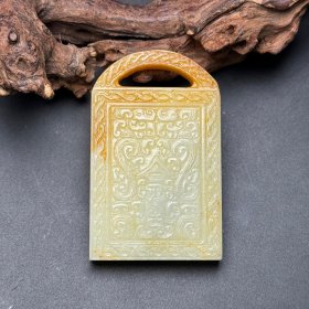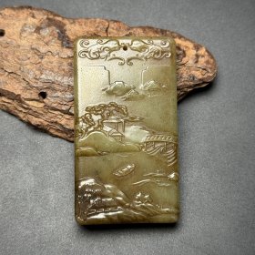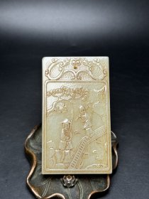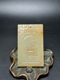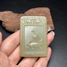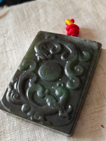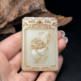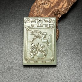 苏工,新疆和田玉作品,喜从天降,平安无事牌,33.25g,浮雕工艺,油润黑青,润如脂,牌型饱满厚实,海派玉雕名家作品有款证全套包装!25983JL321218