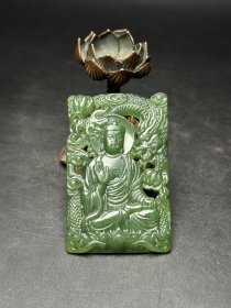 和田玉碧玉牌,雕刻大日如来佛,护佑平安,身旁有腾龙盘踞,风调雨顺,普度众生,牌型美观,工艺生动流畅,玉质温润,色泽鲜艳,佩戴佳品,尺寸61×39×6mm重27g