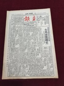 民国三十五年五月立报1946年5月19日恒大祥南货海味行周恩来毛泽东南京白崇禧陆定一陕州黄水言林花果山工商界之老有商报百万金香烟广告可大牌橡胶鞋套吴国珍虎牌型胡适
