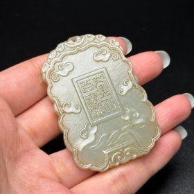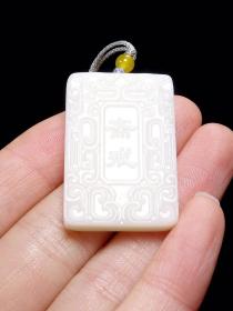 苏工,超值福利脂白新疆和田玉作品,平安无事牌,9.86g,白度脂白,油性出色,脂粉感十足,牌型精美小巧,超值!海派玉雕名家作品,有证书全套包装!17237JL200906