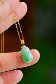 天然缅甸a货翡翠葫芦吊坠。18k镶嵌。送银链。有种有色,颜色超美!缅甸老坑料,尺寸:总高23mm左右。主石约18*10*5mm送精美首饰盒!天然翡翠支持鉴定。一枚360元厂货不议价。
