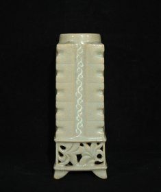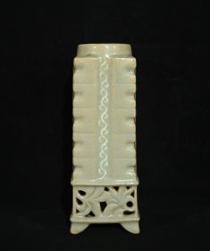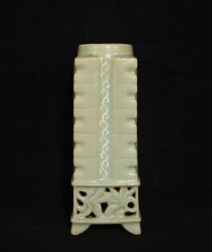 高丽瓷雕花镂空琮式瓶,高22×8.5厘米