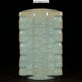 旧藏老瓷器宋汝窑冰裂纹琮式瓶,高17.5直径11cm