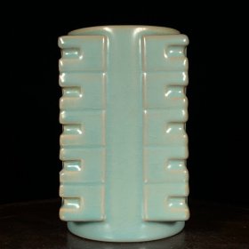宋官窑月白釉琮式瓶 18×7厘米