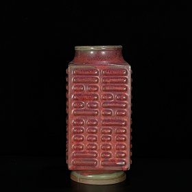 钧窑窑变玫瑰红釉八卦琮式瓶 官字款 12x25.5厘米