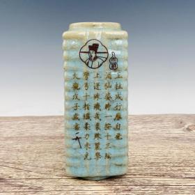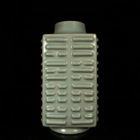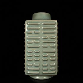 宋汝窑包口铭文琮式瓶,高23直径8.5cm