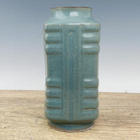 宋官窑天蓝釉冰裂纹琮式瓶 10x23厘米