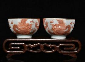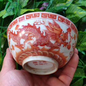 清官窑矾红龙凤纹碗