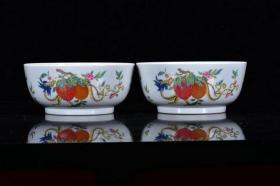 雍正官窑粉彩三果纹本金碗