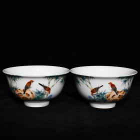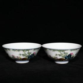 大清雍正官窑珐琅彩竹石花鸟纹碗
