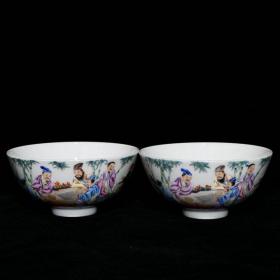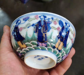 大清雍正官窑粉彩竹林七贤碗